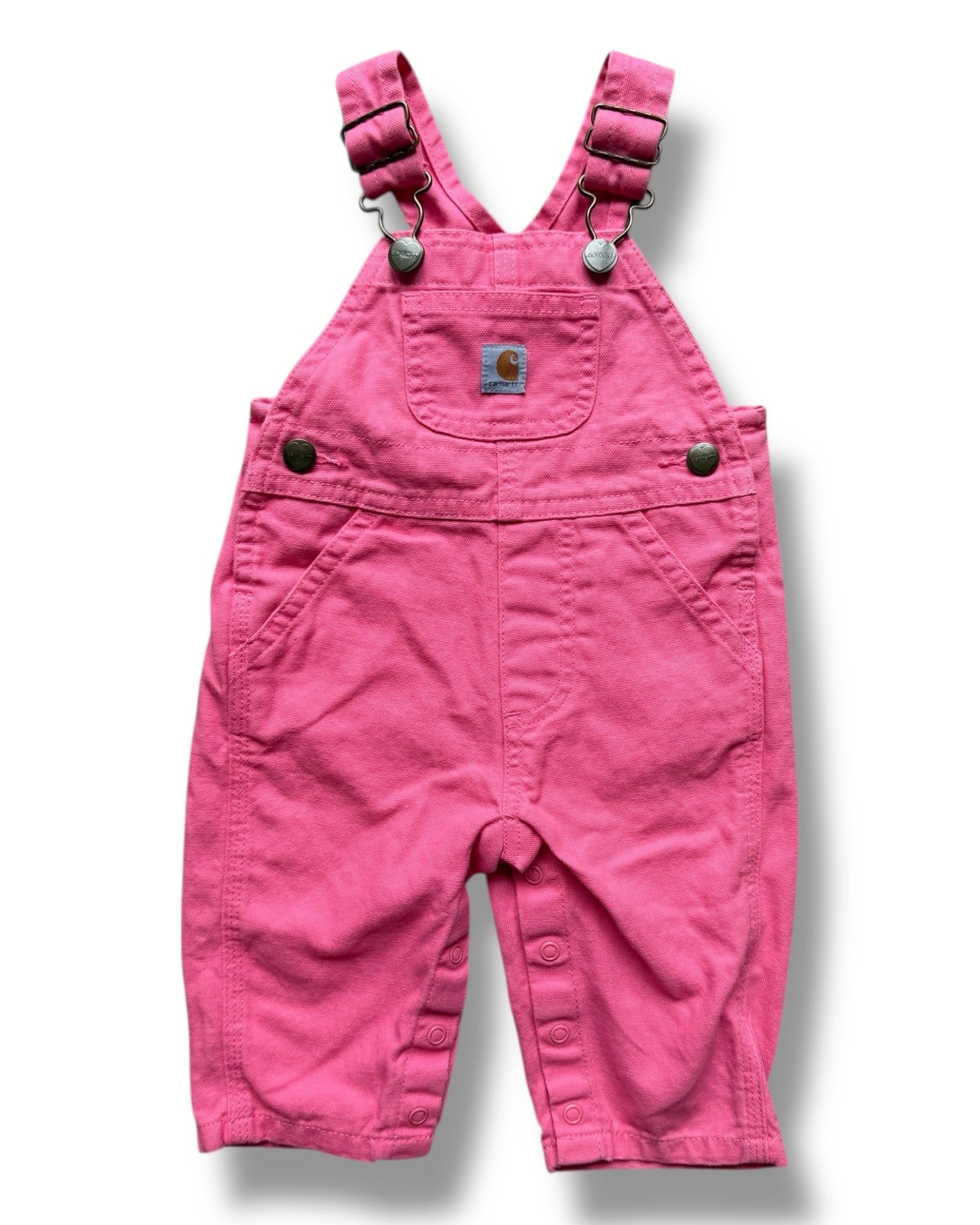 Give your little one that rugged, ready-for-anything vibe with these Carhartt baby dungarees in bright pink. Built tough like the real deal, they're made to withstand all the crawling, climbing, and chaos that comes with being a mini adventurer. The roomy pockets are perfect for stashing treasures, while adjustable straps grow with your baby for extended wear. Quick-access poppers make nappy changes a breeze, and the timeless design means they'll look cool no matter what you pair them with. Vintage-condition perfection for the littlest member of your crew. Size 3 months.