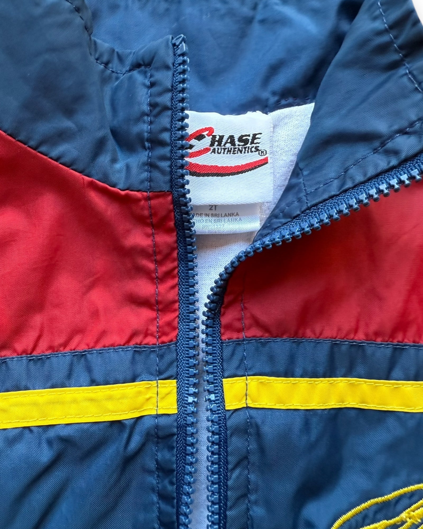 Rev up your wardrobe with this Chase Authentic Nascar Jeff Gordon track jacket! Featuring bold primary colours and that iconic shell suit aesthetic, it's a standout vintage piece that celebrates racing heritage. The full zip design makes layering effortless, while the classic Jeff Gordon branding brings authentic motorsport style to everyday wear. Perfect for fans who want to channel retro racing vibes with attitude. Great vintage condition. Size 2yrs.
