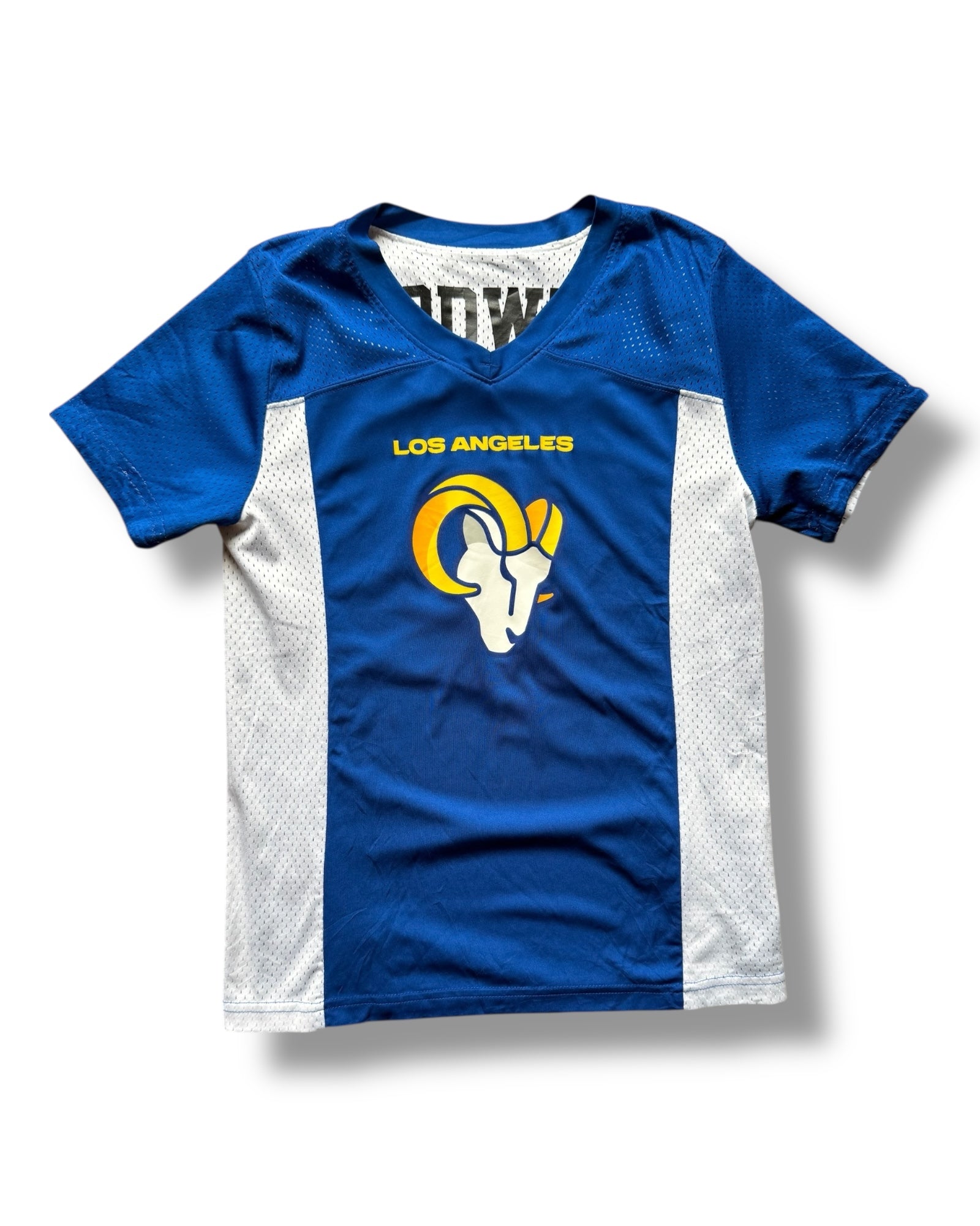 Get your little fan ready to dominate the field in this official NFL LA Rams Flag Football kids jersey! Featuring the iconic Rams colours and logo, this lightweight jersey is perfect for young athletes who love the game. The comfortable fit allows kids to move freely while showing off their team spirit. Whether they're playing flag football at school or cheering from the sidelines, this jersey combines authentic NFL style with kid-friendly durability. Let them rep the Rams with pride!