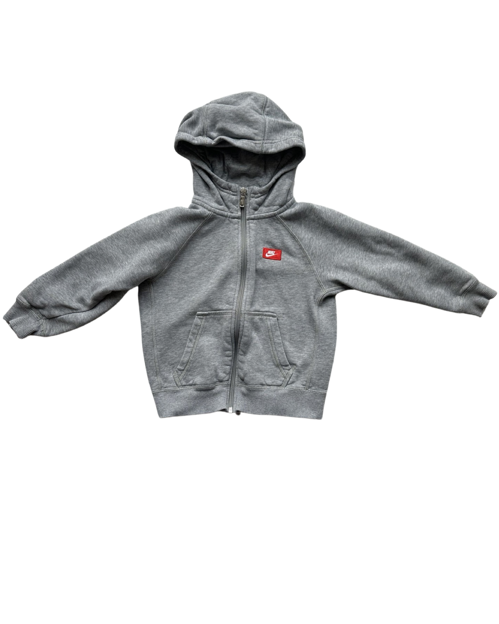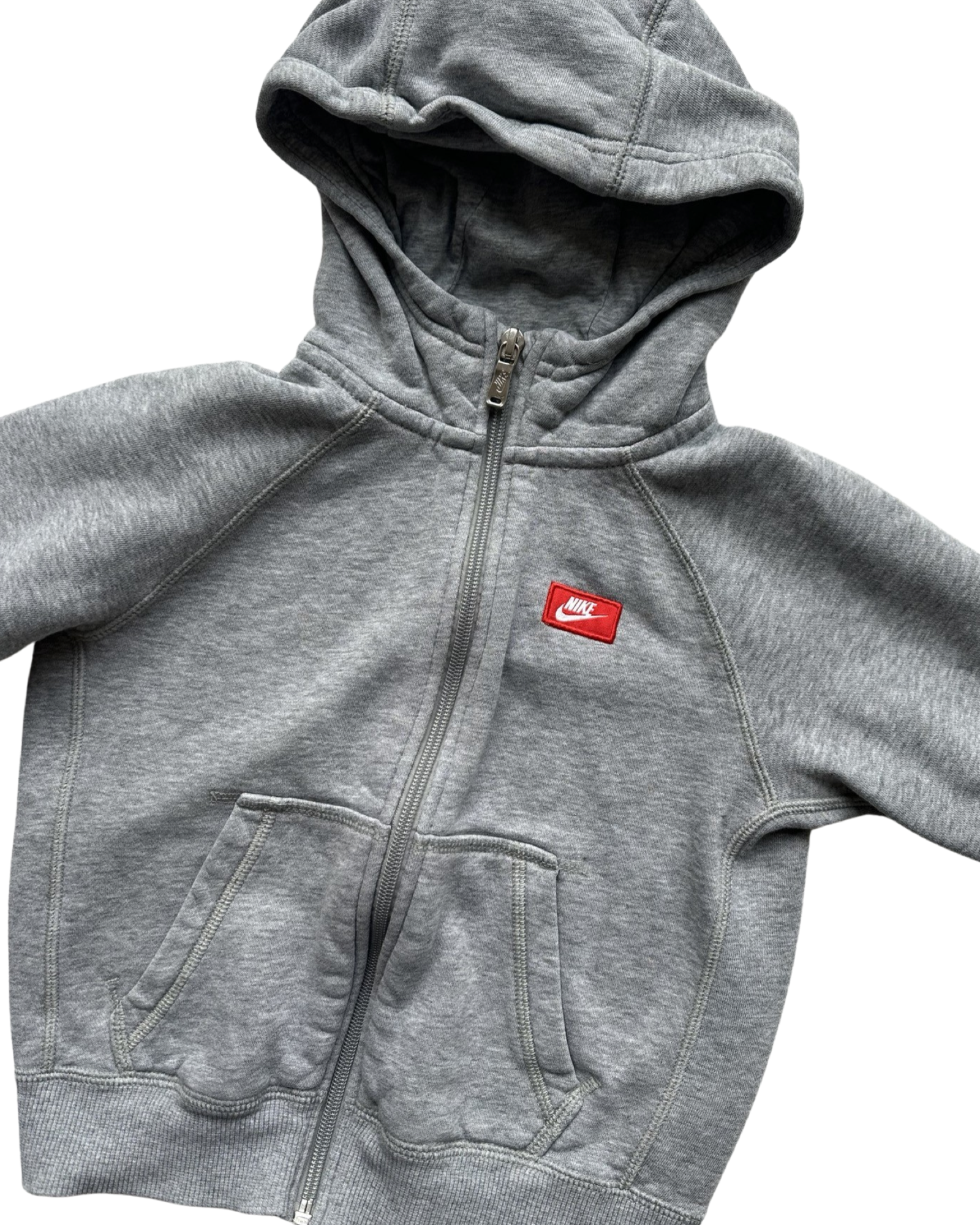 Soft jersey zip up hoodie with red Nike logo patch to front and Nike logo print in white across the back.