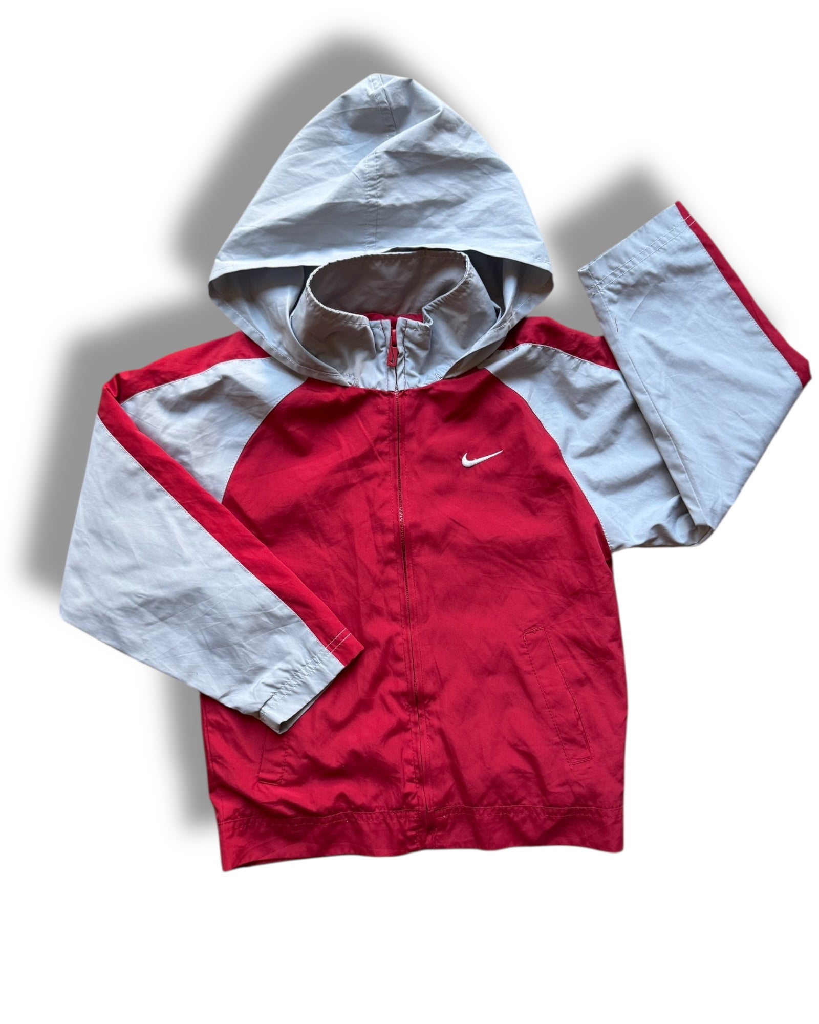 Stay cool and stylish with this vintage Nike full zip kids windbreaker. In a red and grey colourway with an embroidered logo on the back. Size 6yrs. Excellent vintage condition.