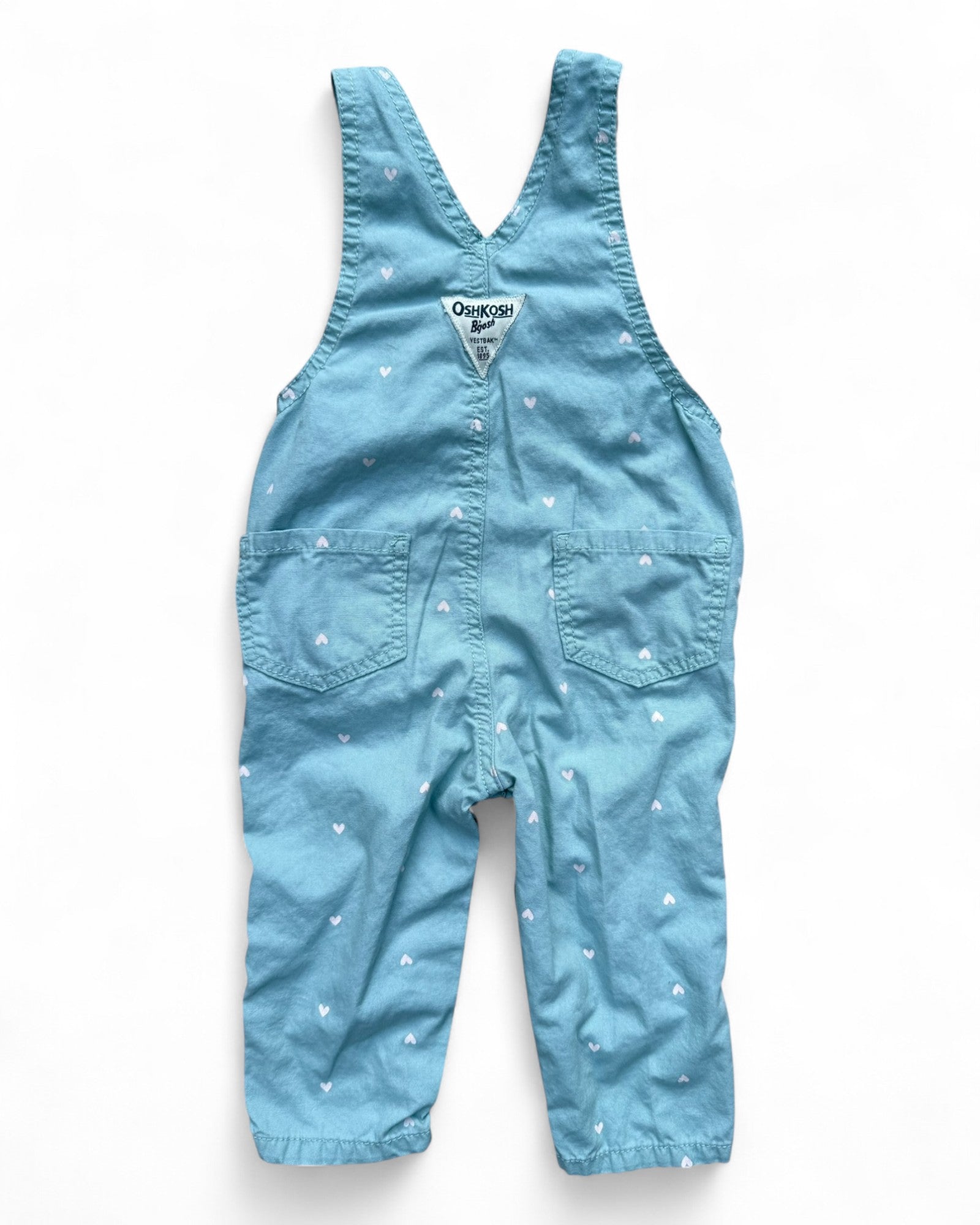 These adorable Oshkosh B'Gosh dungarees feature a charming heart print on a soothing sage green background. Perfect for playdates or family outings, these durable dungarees combine classic style with playful patterns. Watch your little one toddle about in comfort while looking absolutely delightful!