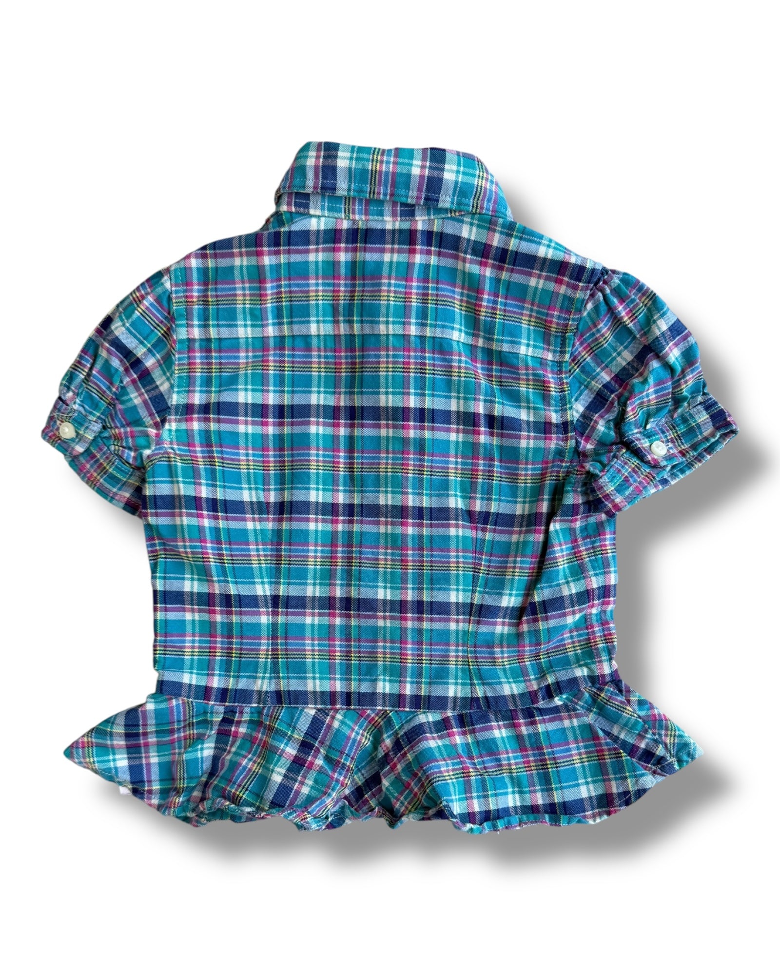 Dress your little one in adorable style with this Ralph Lauren checked toddler shirt. Featuring cute ruffle trims and short sleeves, it’s perfect for keeping your toddler comfy and looking charming during playtime or family outings. A playful twist on a classic look. Excellent vintage condition.