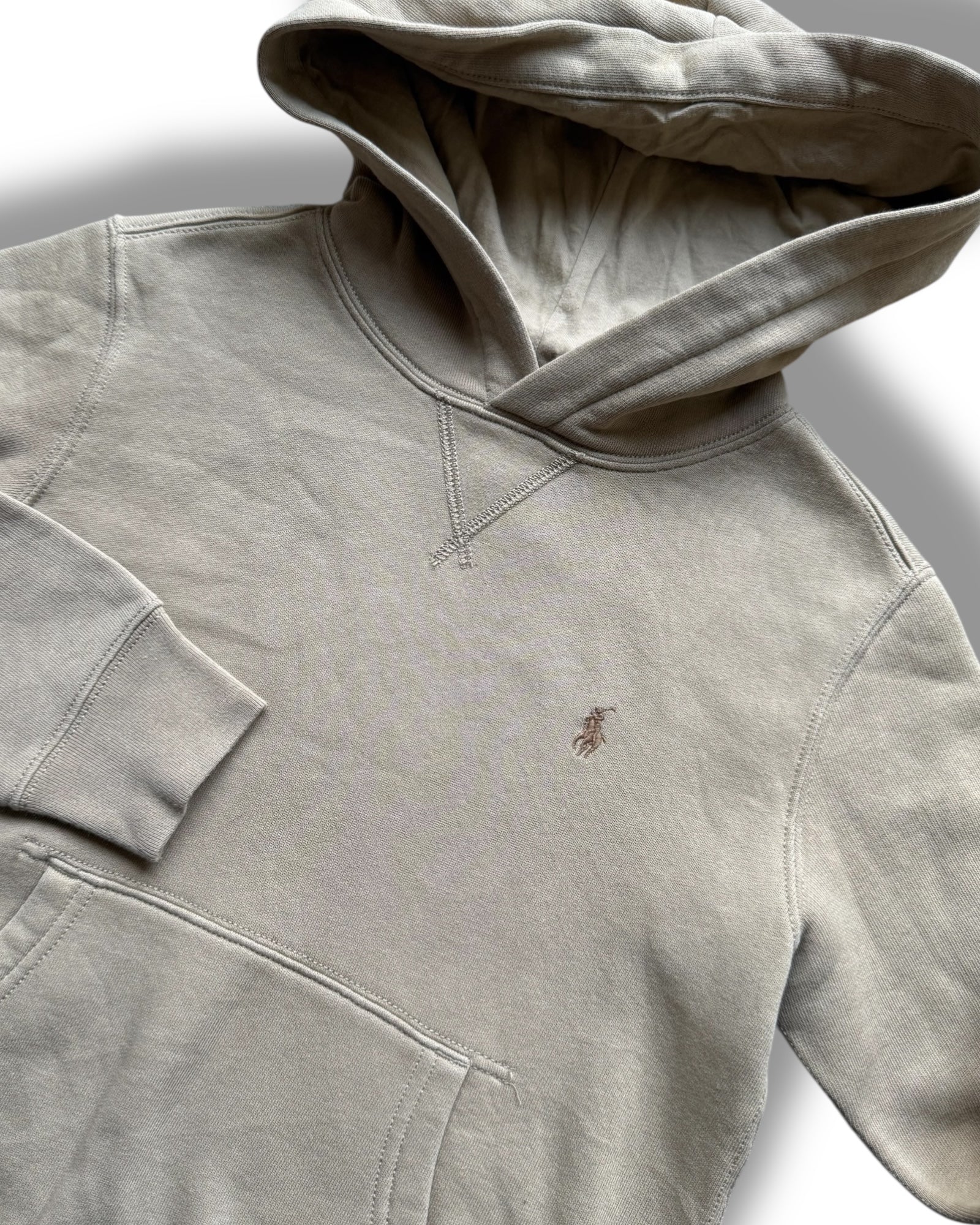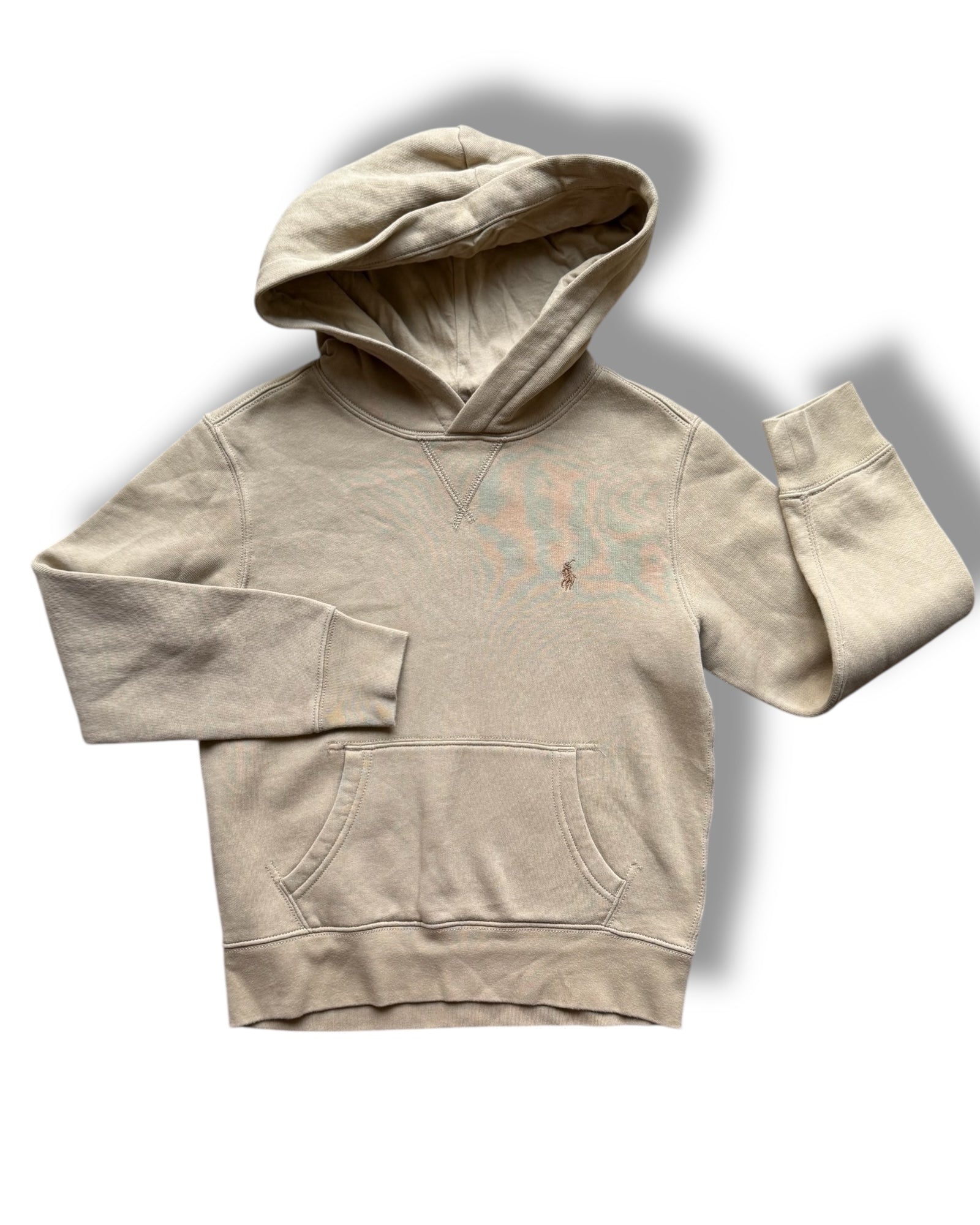 Let your little one stay snug and stylish in this adorable Ralph Lauren hooded kids sweatshirt in warm sand. Perfect for playdates, school runs, or lazy afternoons, this cosy hoodie keeps them comfortable while looking absolutely brilliant. The soft fabric and classic design make it a wardrobe essential that'll have them reaching for it again and again. Simple, timeless, and oh-so-wearable! With embroidered logo to chest and jersey lined hood. Excellent vintage condition. Size 8yrs.