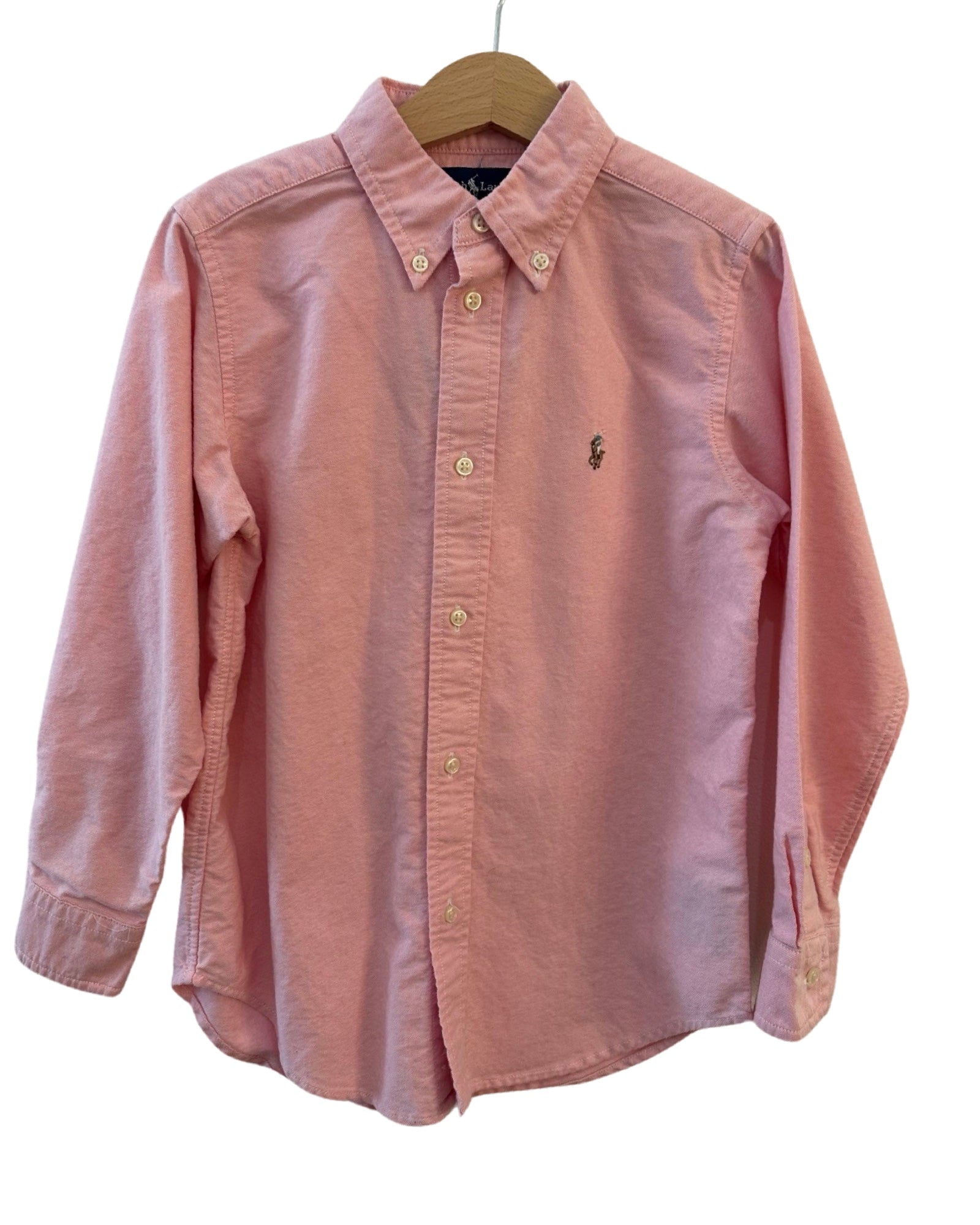 100% cotton pink button down shirt, with classic polo horse embroidered to chest. As new condition.