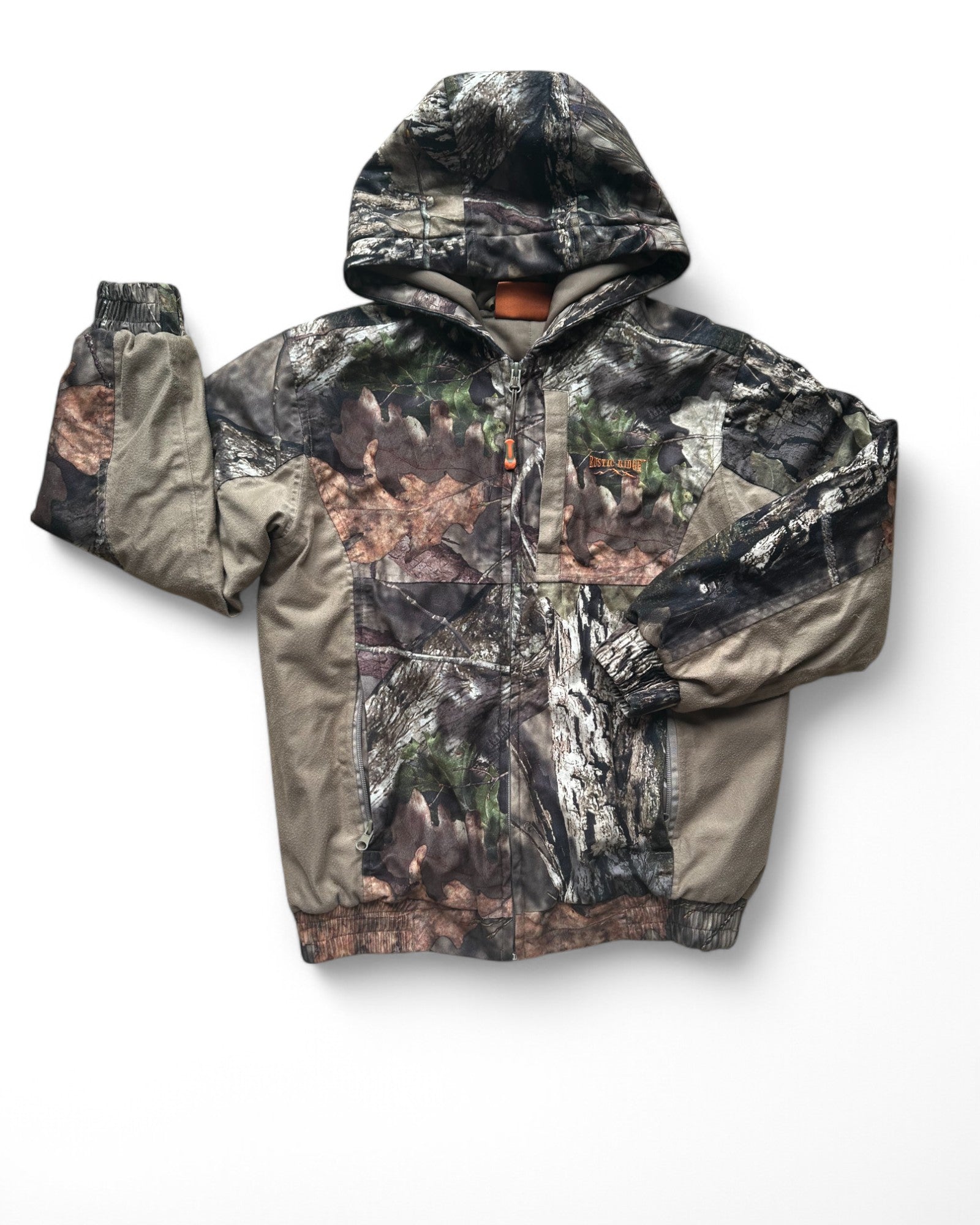 Keep your little adventurer warm and stylish in our Rustic Ridge kids bomber jacket! Featuring a unique realtree camo print and a cozy hood, this fleece lined jacket is sure to stand out on any outdoor excursion. Perfect for your little one's next outdoor adventure!