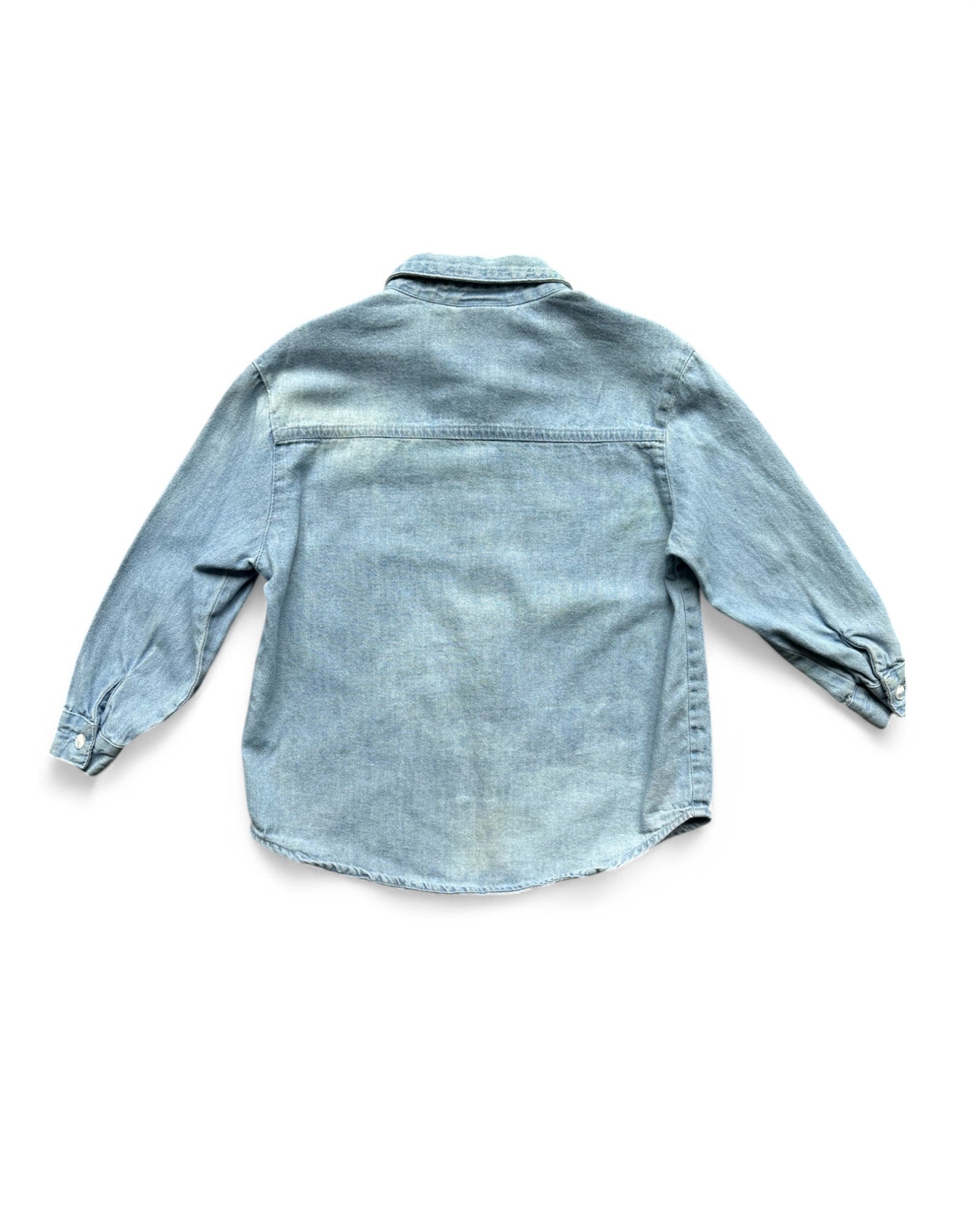 Add a magical touch to your kid's wardrobe with this vintage 90's Walt Disney Snow White denim shirt. Featuring an embroidered Snow White on the chest, this light wash button-down is sure to be a playful addition to their style. Perfect for any Disney fan!