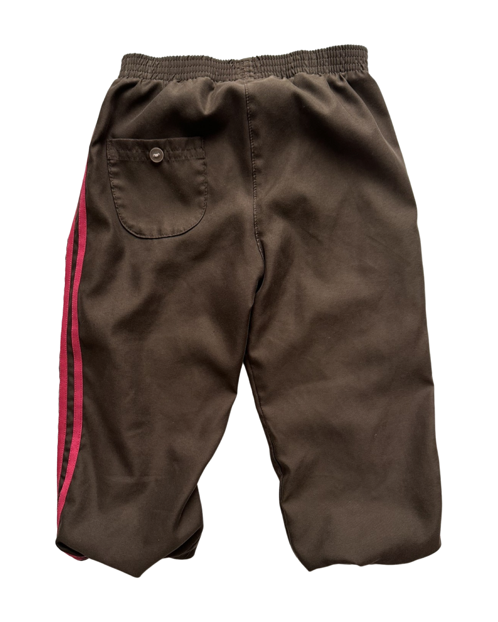 Rare colourway, brown tracksuit bottoms with contrasting pink 3 stripes to sides. Excellent vintage condition.