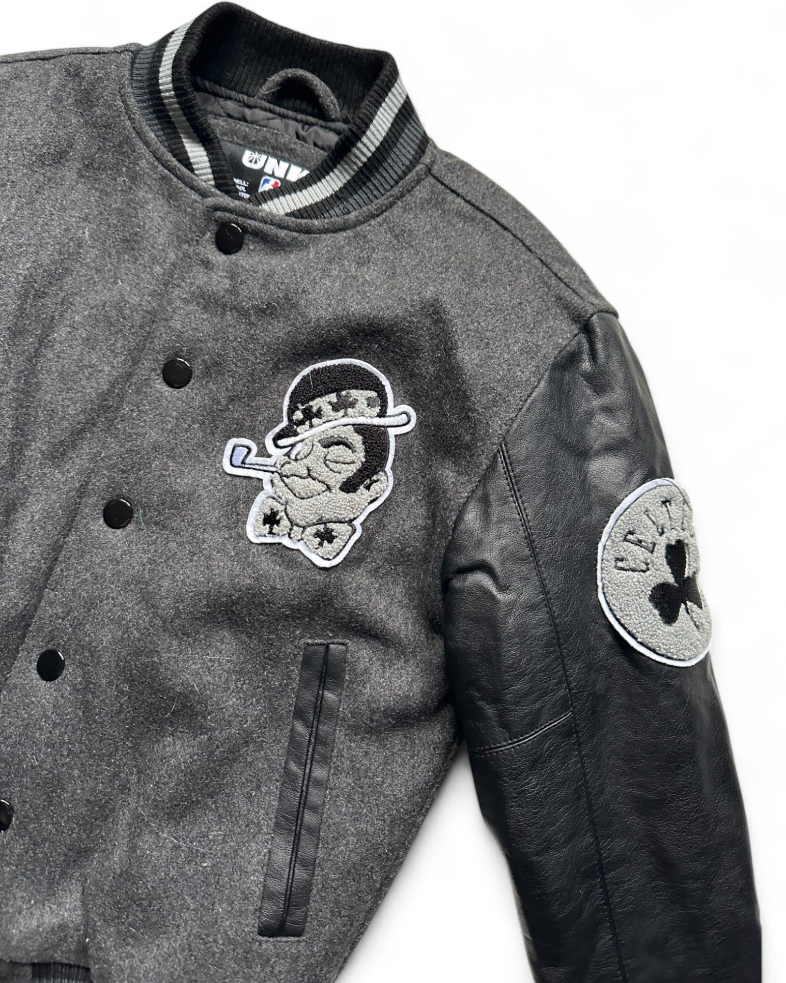 Score some serious style points with this vintage UNK Boston Celtics varsity jacket. With its sleek grey and black design, you'll be representing the Celtics in style. Perfect for fans of all ages, this jacket is a slam dunk for any wardrobe.